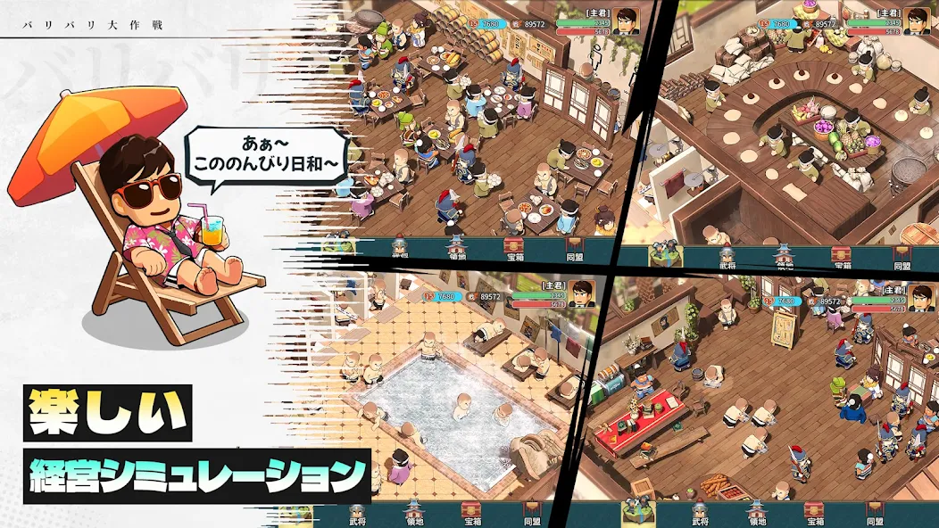 ストレス発散の大逆転が体験できる展開だよ!『バリバリ大作戦』では、転生したあなたが三国志の英傑たちを部下にして、まさに“バリバリ”働かせていくよ。